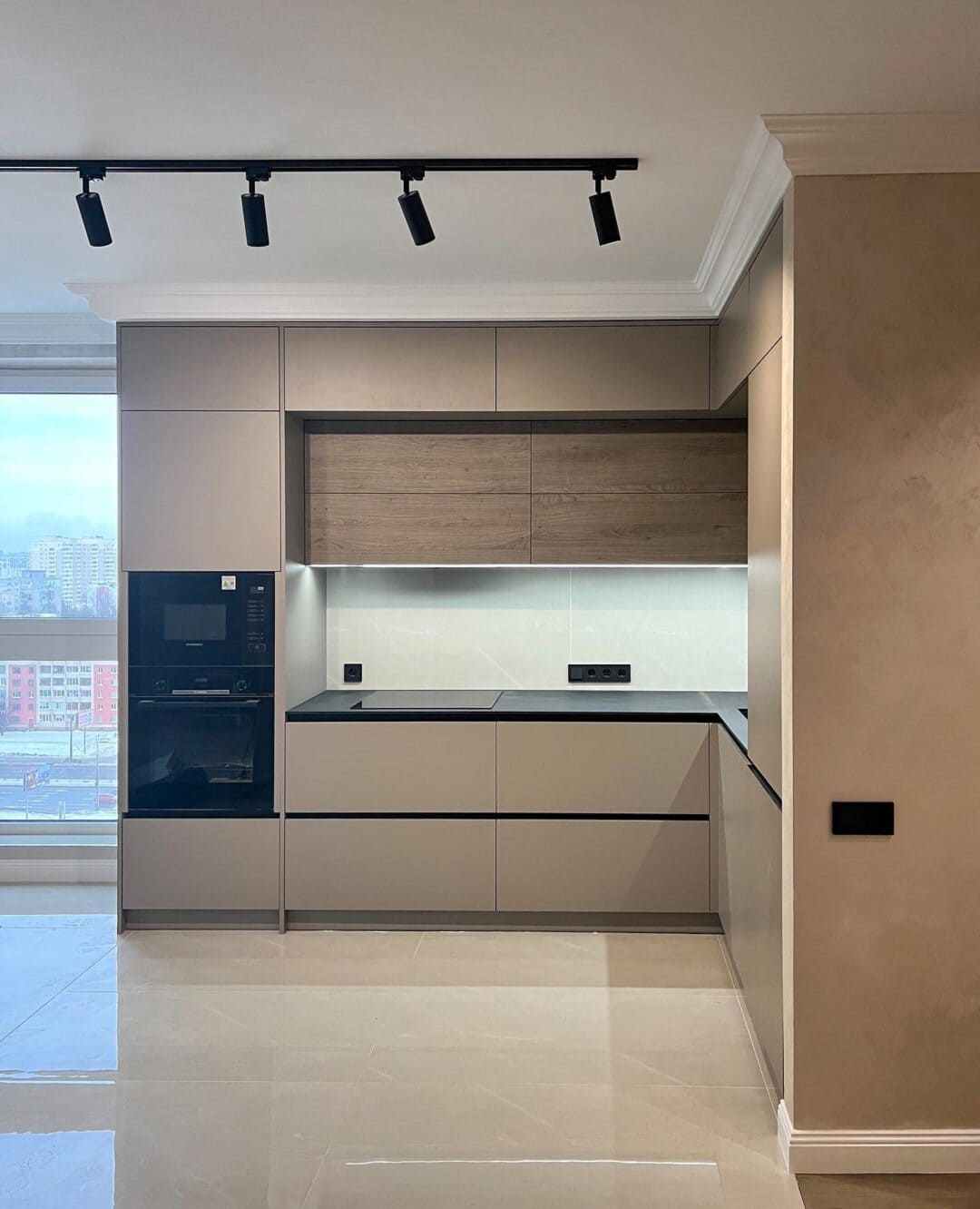 В прихожую присмотрели бежевый шкаф купе, потому что хотелось спокойный и универсальный цвет. Оттенок оказался очень приятным и хорошо сочетается с интерьером. Шкаф сделали по нашим размерам, поэтому он идеально занял место у стены. Внутри всё продумано: есть штанга для одежды, полки и несколько удобных ящиков. Двери двигаются плавно и тихо. Шкаф получился вместительным, аккуратным и отлично дополнил интерьер коридора.